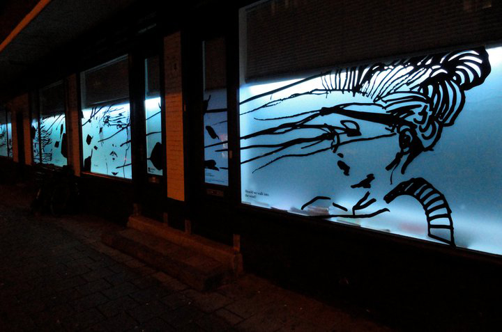 Display project with No-Office showing designed foils at four windows changing every three months.